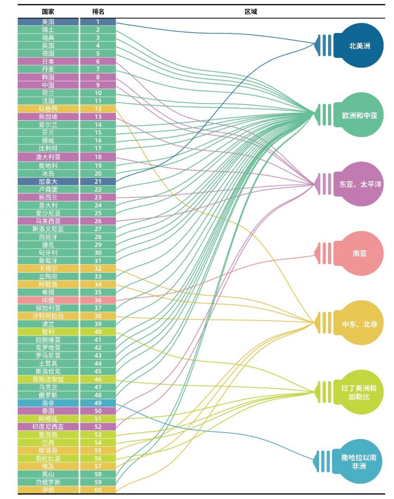 图1 60个国家创新指数综合排名